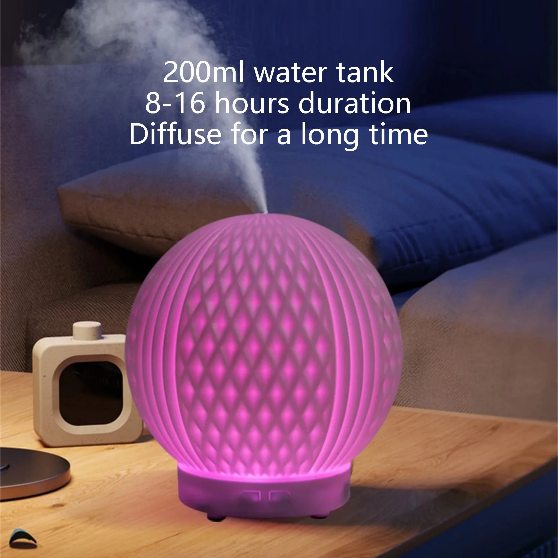Compact & Portable: Measuring just [dimensions], this diffuser is compact and lightweight, making it easy to move from room to room or take with you on the go. Its sleek design ensures it complements any decor, from modern minimalism to cozy boho chic.